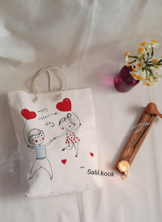 #ولنتاین_هدیه #ولنتاين #هدیه_ولنتاین #ساک_هدیه #نقاشی_روی_پارچه #نه_به_پلاستیک #