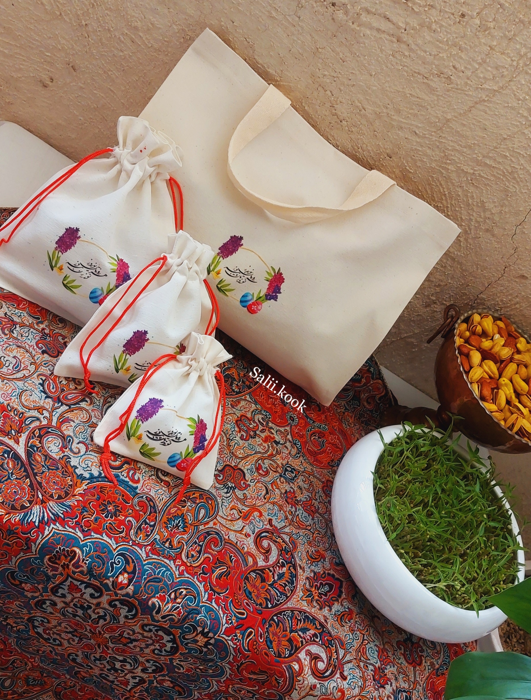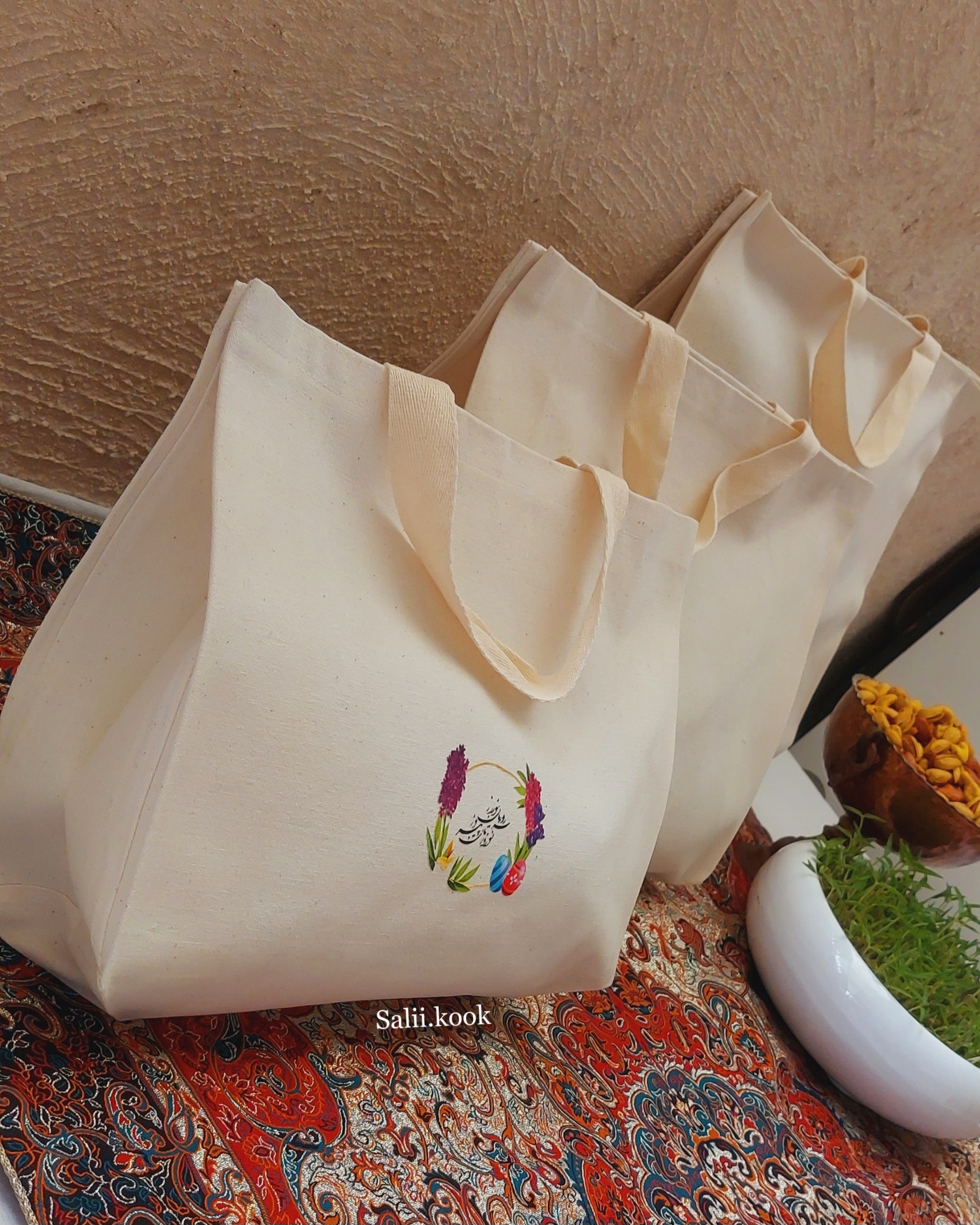 اینها بخشی از نمونه بگها و کیسههای پارچهای تولید مجموعه سالیکوک هست 🌿