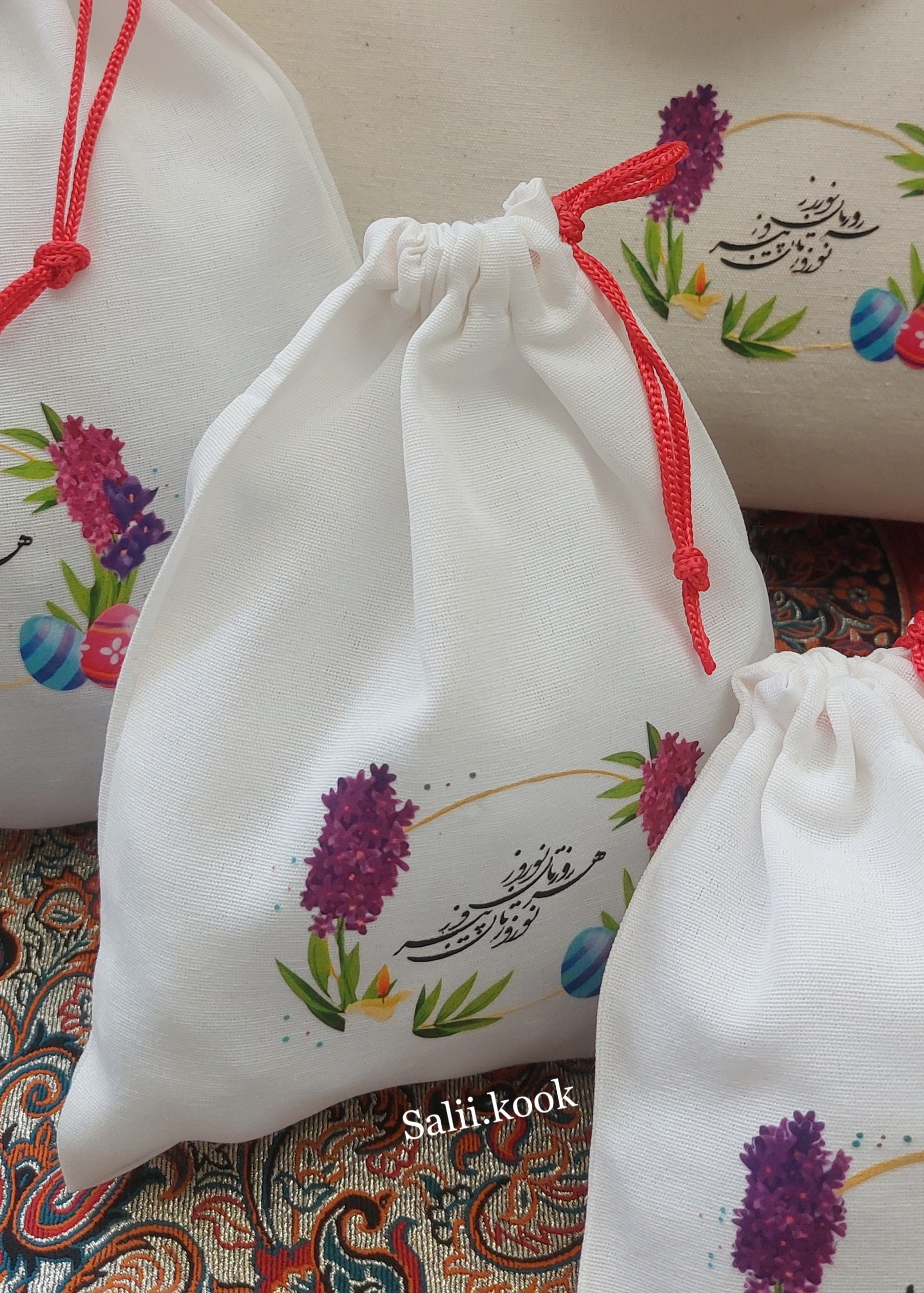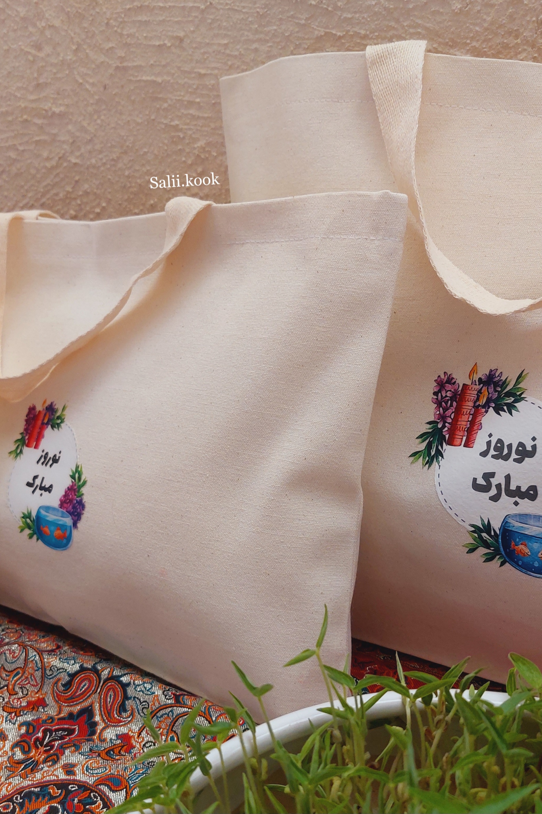 اینها بخشی از نمونه بگها و کیسههای پارچهای تولید مجموعه سالیکوک هست 🌿